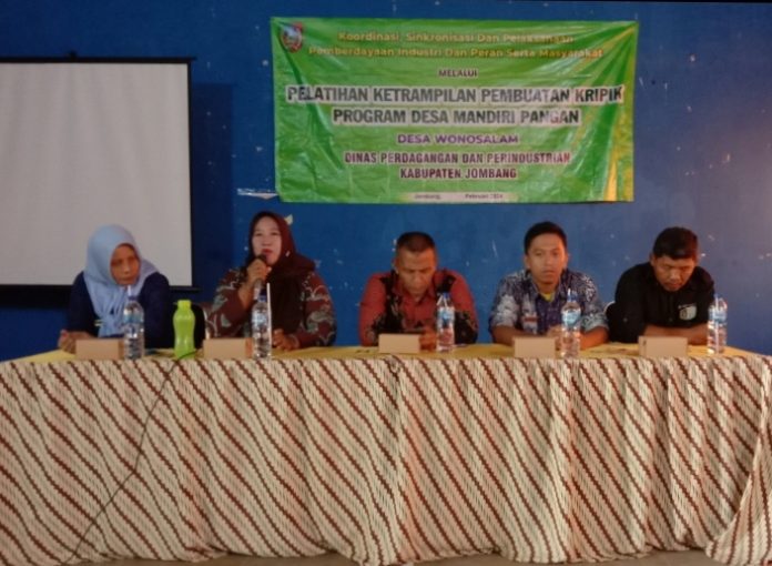 Menanggapi hal tersebut, Dinas Perdagangan dan Perindustrian Kabupaten Jombang gelar koordinasi, sinkronisasi, dan pelaksanaan pemberdayaan industri dan peran serta masyarakat melalui pelatihan keterampilan pembuatan kripik Program Desa Mandiri Pangan (Demapan) di Desa Wonosalam Kecamatan Wonosalam.