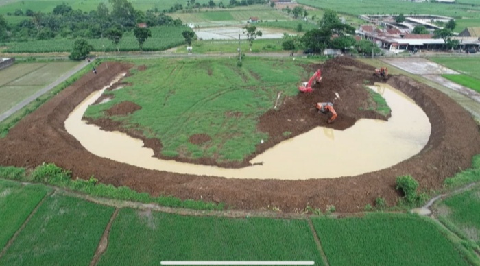 Jombang – Sebagai bangunan konservasi air, Embung berbentuk kolam untuk menampung air hujan dan air limpahan atau air rembesan. Embung akan menyimpan air pada musim hujan, kemudian airnya dapat dimanfaatkan pada musim kemarau atau saat kekurangan air.