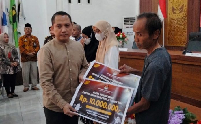 Jombang, Briannova.or.id – Komisi Pemilihan Umum (KPU) Jombang memberikan santunan kepada 4 Petugas Pemungutan Suara tahun 2024. Santunan diberikan ketika Rapat evaluasi Penyelenggaraan Pemilihan Umum (Pemilu) tahun 2024.