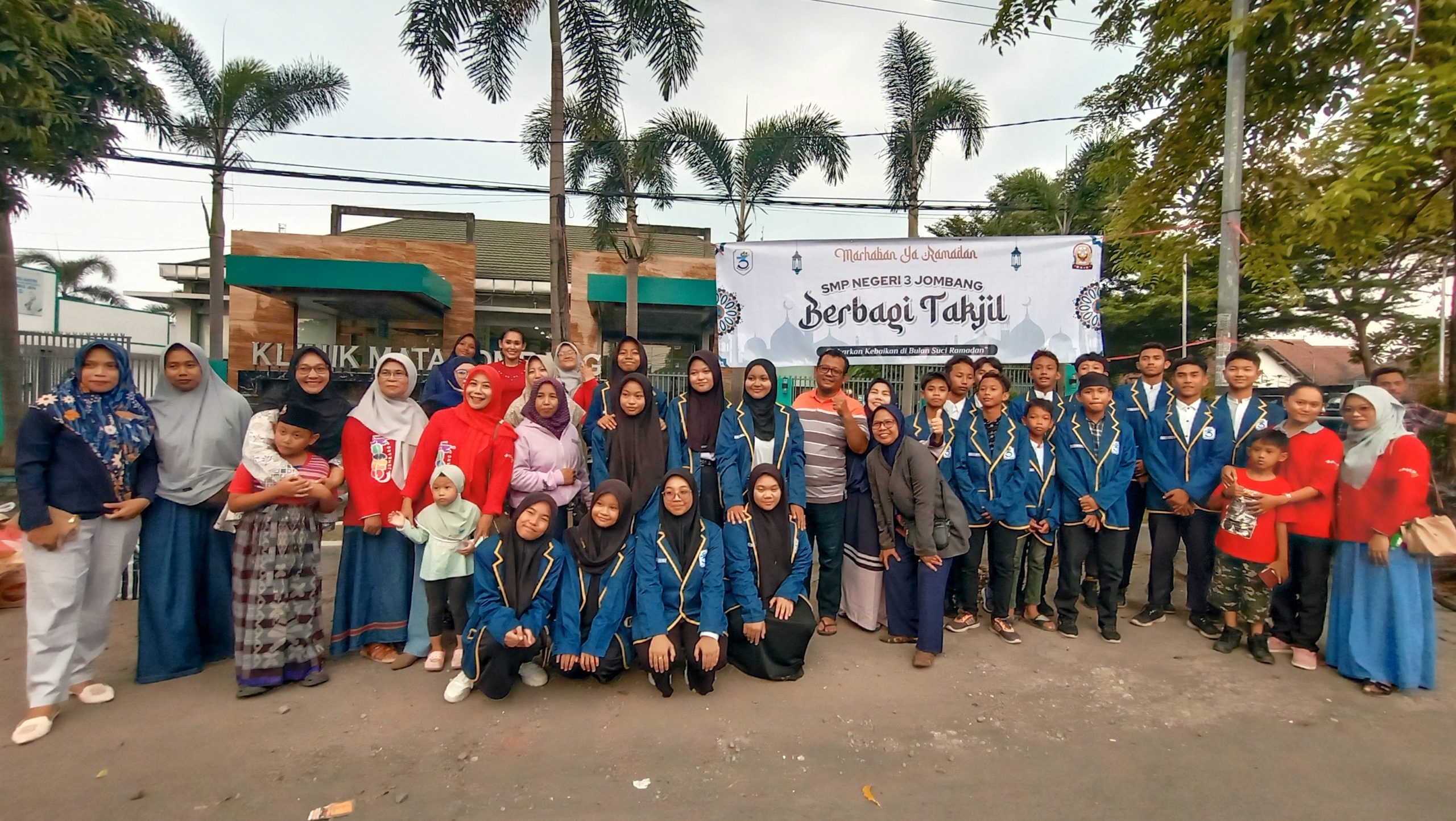 SMP Negeri 3 Jombang menyiapkan 500 bungkus takjil yang dibagikan kepada warga. Sumber dana 500 bungkus takjil tersebut berasal dari sukarela para siswa dan guru. Hal ini disampaikan Kepala SMP Negeri 3 Jombang Eko Sisprihantono ketika diwawancarai. Jumat (22/3/2024)