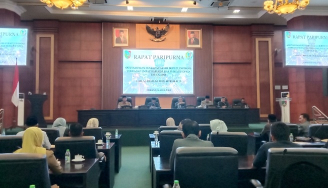 Rapat Paripurna, Pj Bupati Sugiat Sampaikan Pendapat Akhir terhadap Empat Raperda Inisiatif