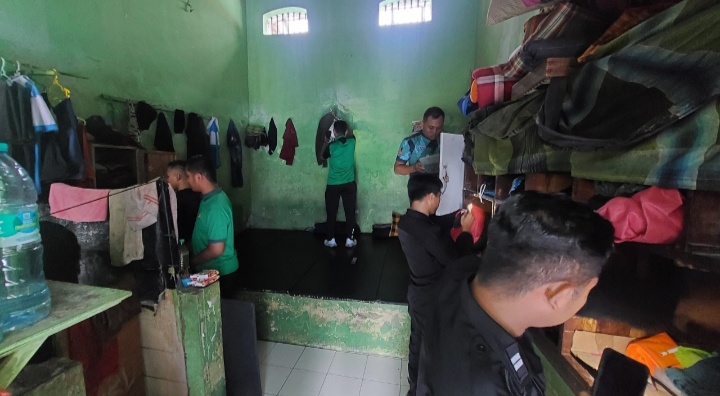 Kemudian warga binaan dikumpulkan di teras blok untuk mendapatkan pengarahan dari Ka.KPLP Dedy Pranata. Selanjutnya petugas melaksanakan penggeledahan di kamar kamar hunian warga binaan dan lingkungan sekitar blok A.