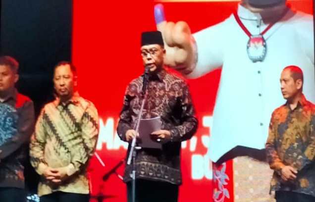 Pj. Bupati Jombang Sugiat ketika sambutan menyampaikan, dirinya mengajak seluruh masyarakat untuk ikut serta dalam acara Nonton Bareng (Nobar) Pertandingan Indonesia VS Filipina di kualifikasi Piala Dunia 2026 Zona Asia.