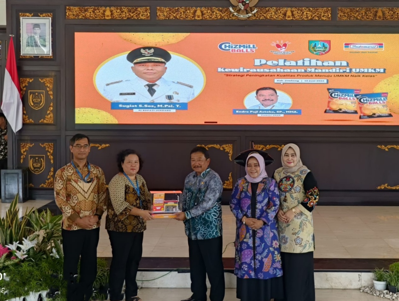 Jombang, Briannova.or.id – Dinas Perdagangan dan Perindustrian (Disdagrin) Kabupaten Jombang bekerja sama dengan PT Indomarco Prismatama Jombang gelar pelatihan kewirausahaan mandiri Usaha Mikro Kecil dan Menengah (UMKM) mengusung tema “Strategi Peningkatan Kualitas Produk Menuju UMKM Naik Kelas”