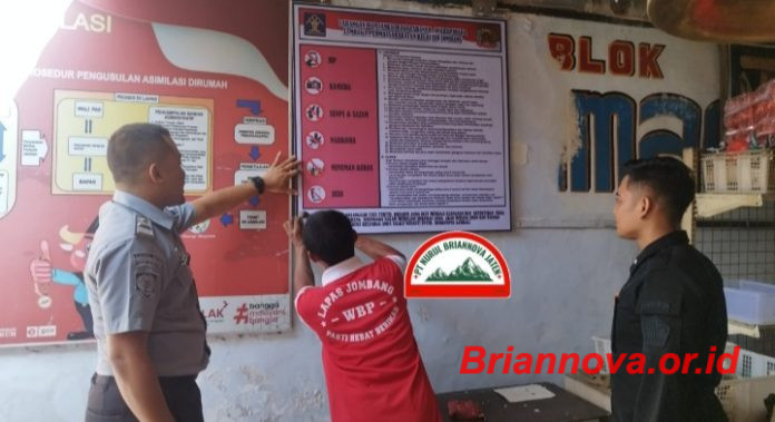 Jombang, Briannova.or.id – Guna menindaklanjuti kunjungan Direktur TI dan Kerja Sama Pemasyarakatan, Marselina Budiningsih di Lapas Kelas IIB Jombang Kanwil Kemenkumham Jawa Timur hari kamis yang lalu (26/07/2024) tentang arahan untuk pemasangan papan informasi tata tertib di titik titik tertentu, maka hari ini (Minggu, 28/07/2024) dilaksanakan pemasangan papan informasi tata tertib.