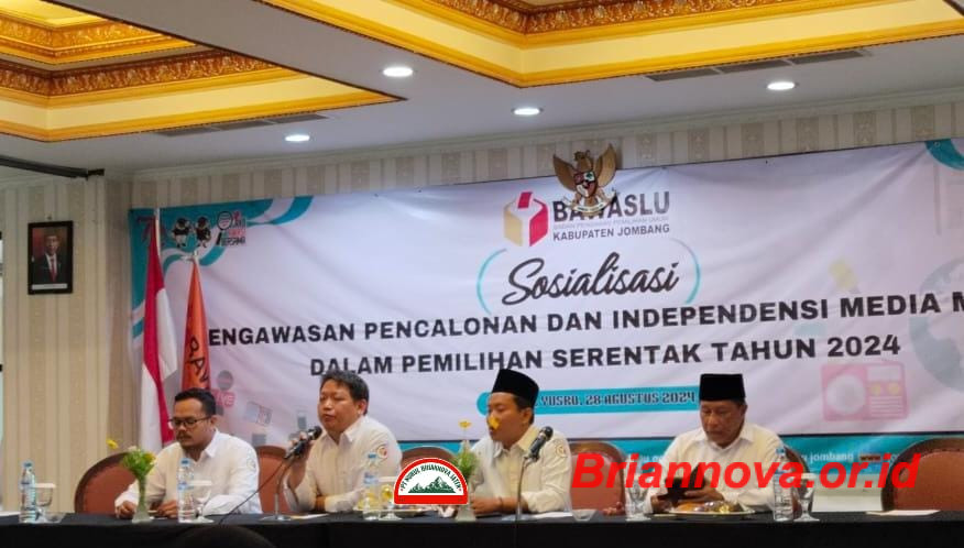 Jombang, Briannova.or.id – Saat ini Pilkada tahun 2024 sedang di tahapan Pencalonan bagi Bakal Calon Bupati dan Bakal Calon Wakil Bupati Tahun 2024, maka dari itu, Badan Pengawas Pemilu (BAWASLU) Kabupaten Jombang gelar sosialisasi pencalonan dan independensi media massa dalam pemilihan serentak tahun 2024, bertempat di Hotel Yusro Jombang. Rabu (28/08/24)