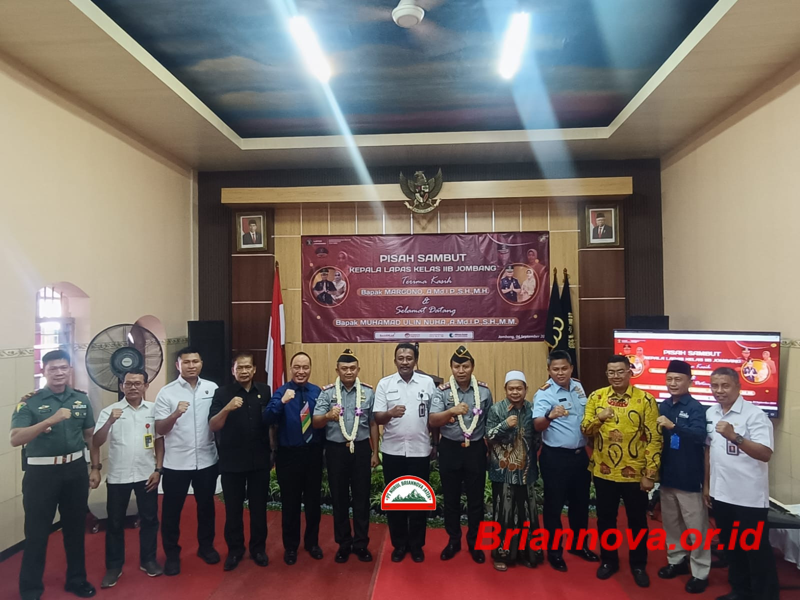 Jombang, Briannova.or.id – Lapas kelas IIB Jombang Kanwil Kemenkumham Jawa Timur gelar pisah sambut Kepala Lapas Kelas IIB Jombang dihadiri oleh PJ Bupati Jombang yang diwakilkan oleh Staf Ahli Bidang Sumber Daya Manusia dan Kemasyarakatan Sudiro Setiono.