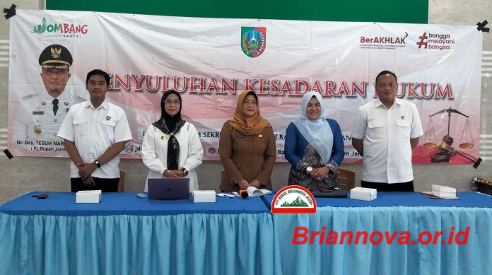 Jombang, Briannova.or.id – Pemerintah Kabupaten Jombang melalui Bagian Hukum Setdakab Jombang gelar penyuluhan kesadaran hukum tentang Kekerasan Dalam Rumah Tangga (KDRT), bertempat di balai Desa Cukir, Kecamatan Diwek, Kabupaten Jombang.