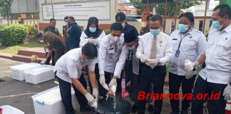Dilarutkan ke Air dan di Bakar, Kejaksaan Jombang Musnahkan Barang Bukti