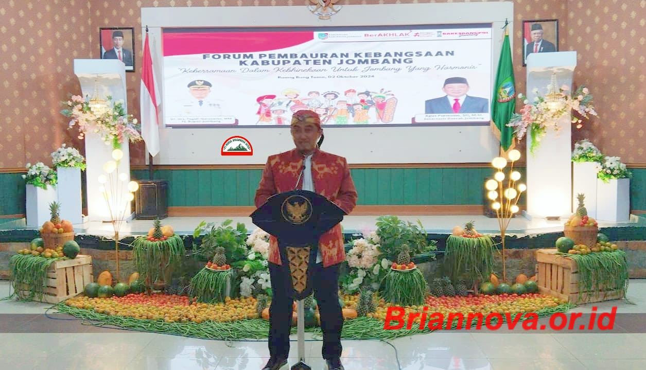 Jombang, Briannova.or.id – Badan Kesatuan Bangsa Dan Politik (Bakesbangpol) Kabupaten Jombang Drs. Anwar melalui kepala Bidang Ideologi Wawasan Kebangsaan Ketahanan Ekonomi Sosial dan Budaya Arfan Budi Sucahyo bersama Forum Pembauran Kebangsaan Kabupaten Jombang mengadakan silahturahmi bersama PJ Bupati Jombang yang baru dengan mengangkat tema Kebersamaan dalam Kebhinekaan untuk Jombang yang Harmonis. Rabu (02/10/24)