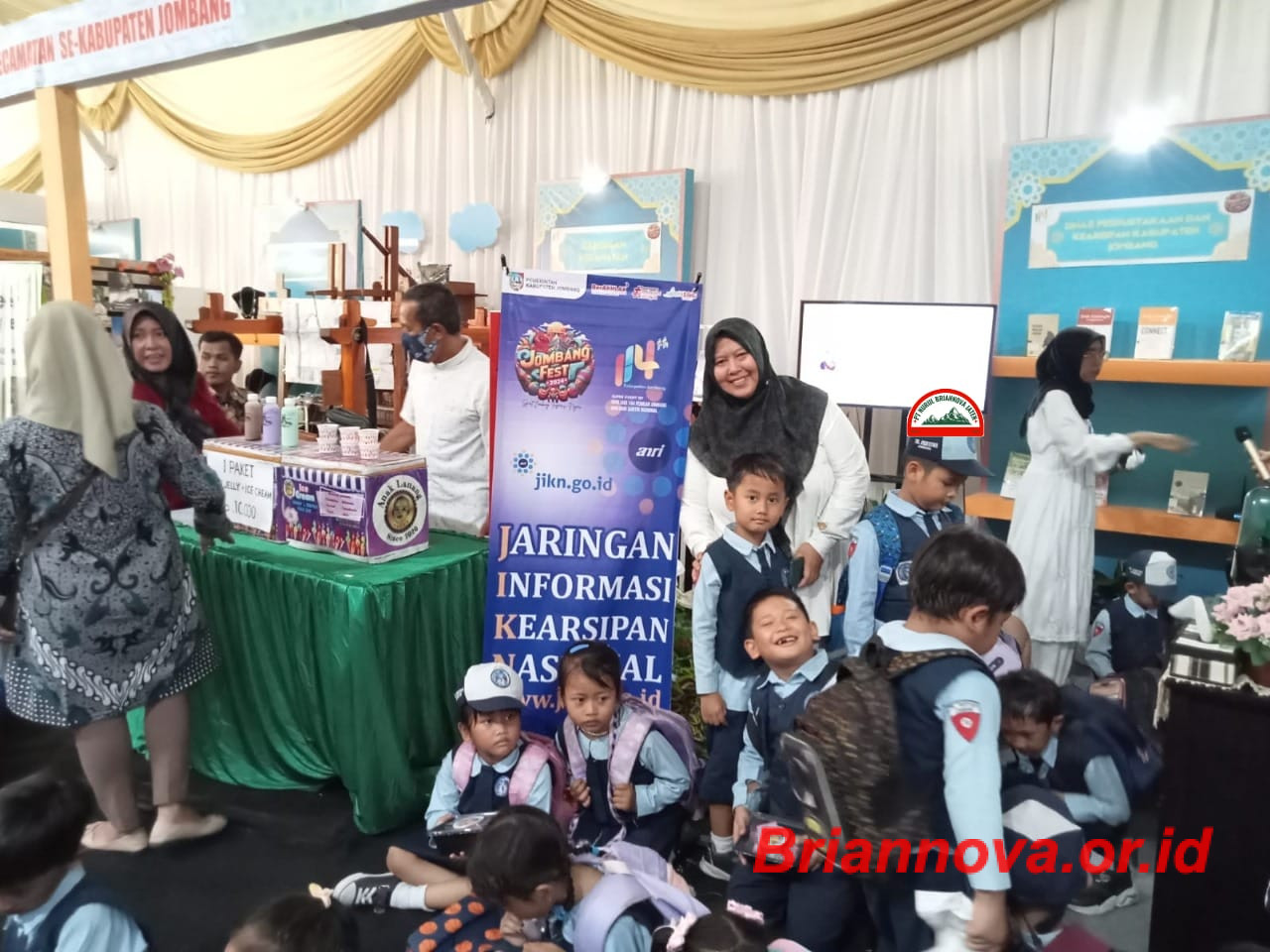 Jombang, Briannova.or.id – Ikut meriahkan Jombang Fest 2024, Dinas Perpustakaan dan Kearsipan Kabupaten Jombang buka stand dengan menampilkan inovasi daerah bidang kearsipan dengan tema Sos Lina Numpak Sepeda Jengki, bertempat di zona B Alun-alun Kabupaten Jombang.