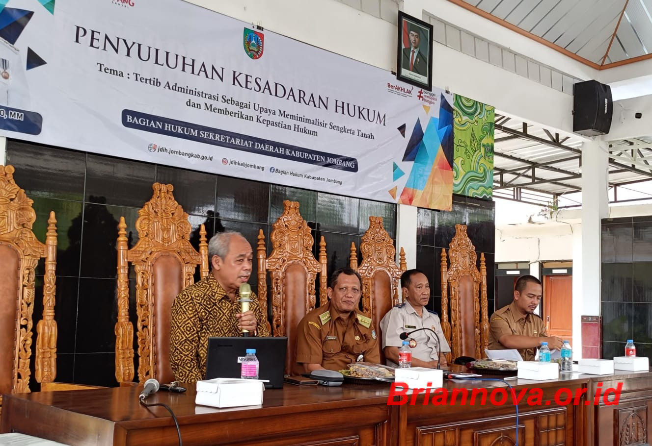 Jombang, Briannova.or.id – Adanya penyuluhan terkait pelepasan tanah dan waris, Bagian Hukum Setdakab Jombang berika pemahaman lebih kepeda para Pemerintah Desa dari sisi regulasi dan implementasi ketika terjadi permasalahan hukum, peristiwa hukum dan perbuatan hukum yang berkaitan dengan tanah dan waris pada hari Senin (18/11/24), bertempat di Kantor Kecamatan Plandaan Kabupaten Jombang.