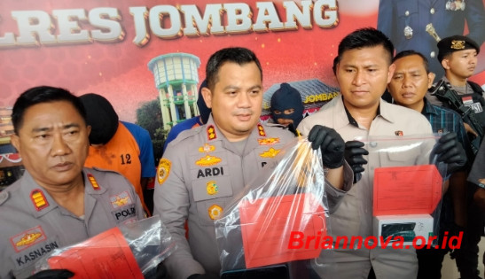 Jombang, Briannova.or.id – Kapolres Jombang AKBP Ardi Kurniawan membuka secara langsung konferensi pers ungkap kasus pembunuhan di TKP saluran sungai di Desa Pacarpeluk, Kecamatan Megaluh, Kabupaten Jombang.