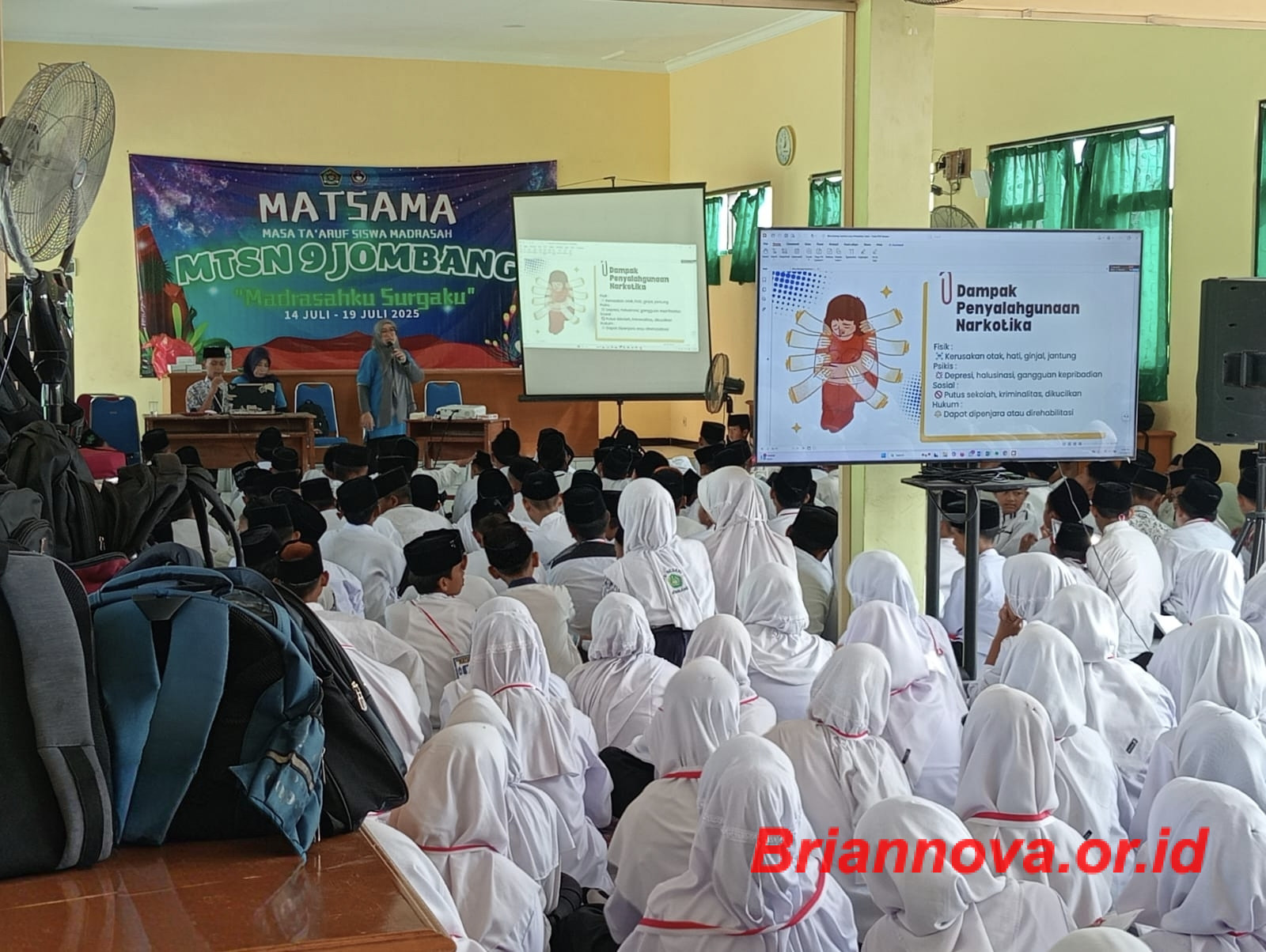 Kini MTsN 9 Jombang dalam rangkaian MPLS menggerlar kegiatan Masa Ta’aruf Siswa Madrasah (MATSAMA) dengan mengusung tema Madrasahku Surgaku.
