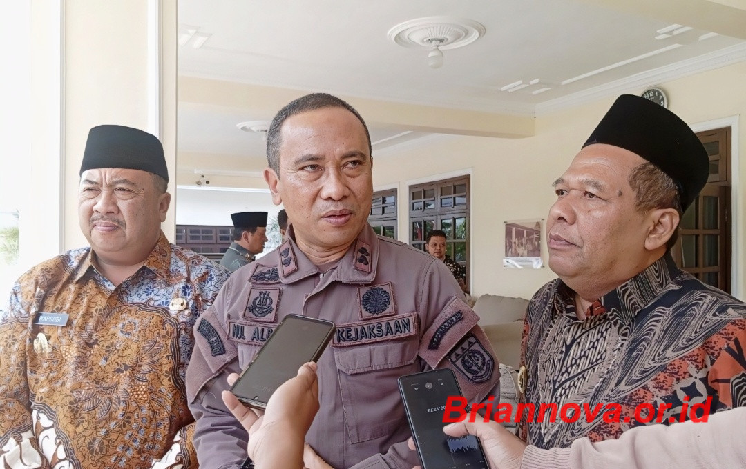 Caption Foto : Kepala Kejaksaan Negeri Jombang Nul Albar saat diwawancarai bersama Bupati Jombang Warsubi dan Wakil Bupati Jombang Salmanudin Yazid