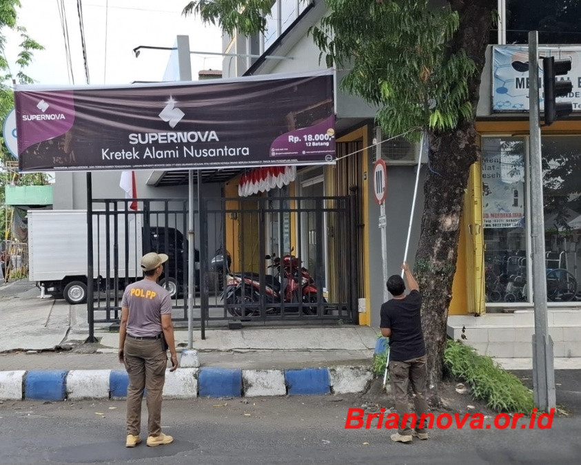 Jombang, Briannova.or.id – Untuk menjaga keamanan, ketertiban, keindahan, dan kenyamanan lingkungan, serta memastikan kepatuhan terhadap peraturan yang berlaku, Kepala Satuan Polisi Pamong Praja Kabupaten Jombang melakukan penertiban reklame.