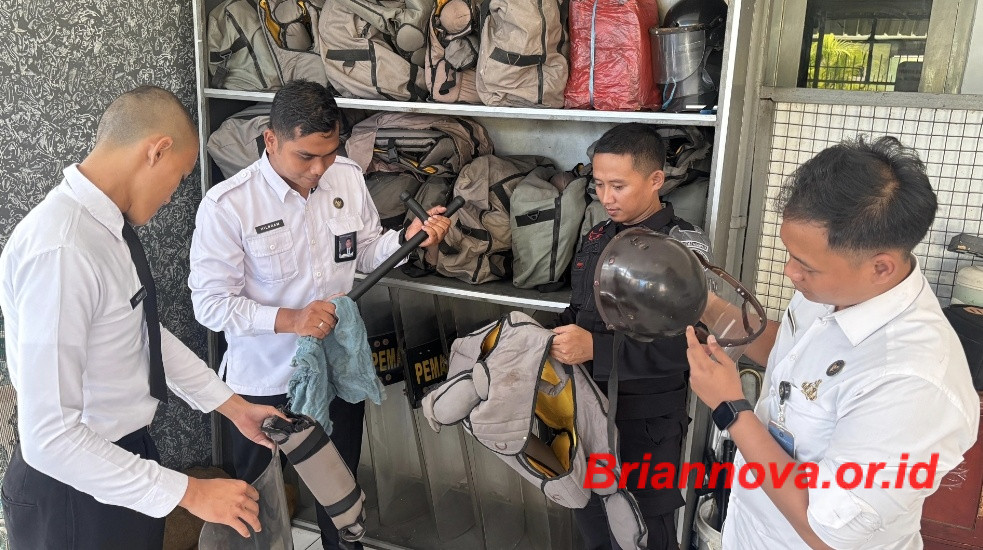 Jombang, Briannova.or.id – Lembaga Pemasyarakatan (Lapas) Kelas IIB Jombang terus berkomitmen menjaga situasi keamanan dan ketertiban di dalam lingkungan lapas. Salah satu upaya yang dilakukan adalah dengan melakukan perawatan rutin terhadap alat bantu keamanan berupa Peralatan Huru-Hara (PHH). Kamis (04/08/25).