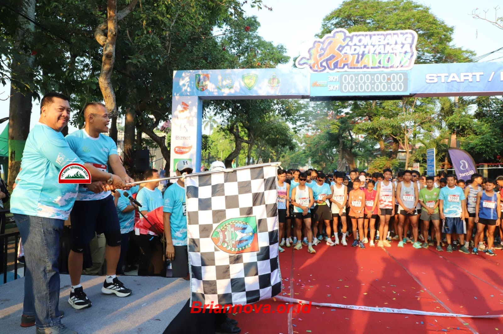 Jombang Adhyaksa Playon 2025 start dan finish berada di depan SMA Negeri 1 Jombang yang diberangkat oleh Bupati Jombang Warsubi berlangsung pada hari Minggu (19/10/25)