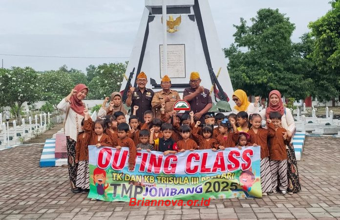 Jombang, Briannova.or.id – Bersamaan dengan memperingari Hari Pahlawan pada tanggal 10 November 2025, Dinas Sosial Kabupaten Jombang dan Legiun Veteran Republik Indonesia (LVRI) Kabupaten Jombang tanamkan rasa patriotisme kepada peserta didik Taman Kanak-Kanak di Kabupaten Jombang.