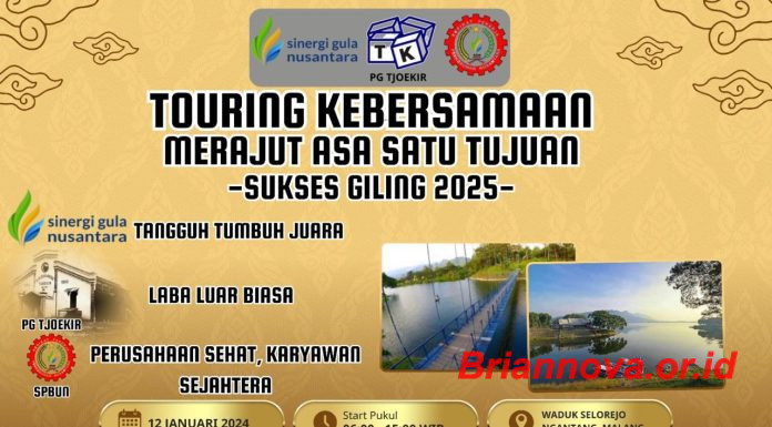 Jombang, Briannova.or.id - Menjelang musim giling di tahun 2025, PT. Sinergi Gula Nusantara (SGN) Pabrik Gula (PG) Tjoekir adakan touring kebersamaan merajut asa satu tujuan.