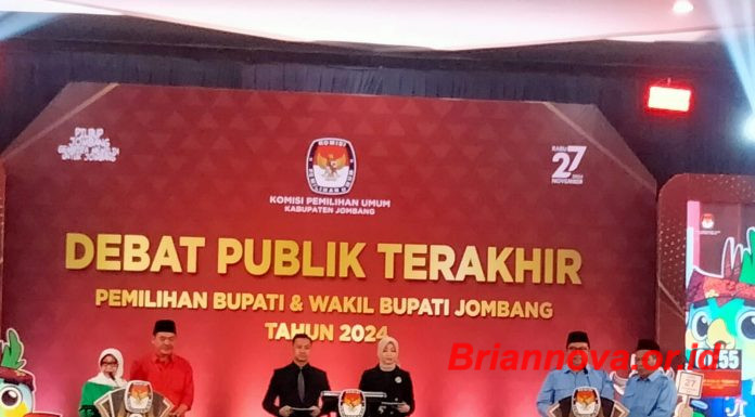 Jombang, Briannova.or.id - 11 (sebelas) hari, Komisi Pemilihan Umum (KPU) Kabupaten Jombang gelar debat publik terakhir pemilihan Bupati dan Wakil Bupati Jombang tahun 2024.