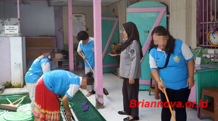 Jombang, Briannova.or.id - Dengan pengawasan petugas blok wanita, WBP wanita bergotong royong membersihkan kamar dan blok hunian wanita Sabtu Pagi (25/01/25).