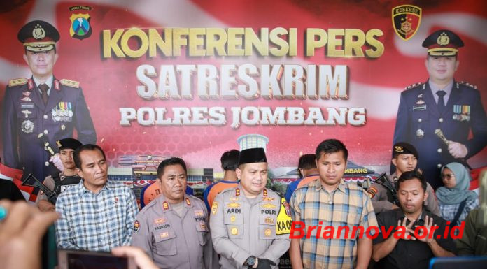 Jombang, Briannova.or.id - Kasat Reskrim Polres Jombang AKP Margono Suhendra gelar konferensi pers ungkap kasus pembunuhan di Kabuh, Kabupaten Jombang. Jumat (31/01/25)