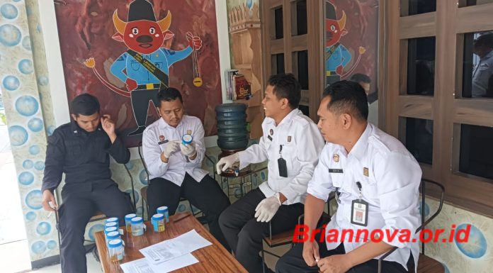 Jombang, Briannova.or.id - Dalam rangka Pencegahan Pemberantasan Penyalahgunaan dan Peredaran Gelap Narkotika (P4GN) serta tindak lanjut atas perintah Kepala Kanwil Kemenkumham Jawa Timur untuk secara rutin/berkala dilaksanakan tes urine pada warga binaan, Lembaga Pemasyarakatan (Lapas) Kelas IIB Jombang kembali...