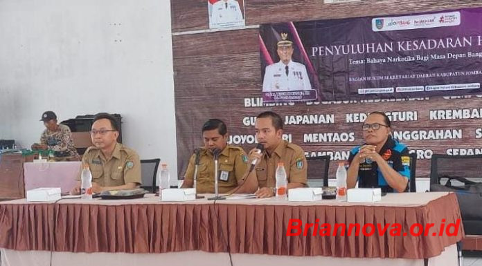 Jombang, Briannova.or.id - Guna meminimalisir narkotika di masa depan, Bagian Hukum Setdakab Jombang gelar penyuluhan kesadaran hukum dengan tema Bahaya Narkotika Bagi Masa Depan, bertempat di Pendopo Kecamatan Gudo Kabupaten Jombang.