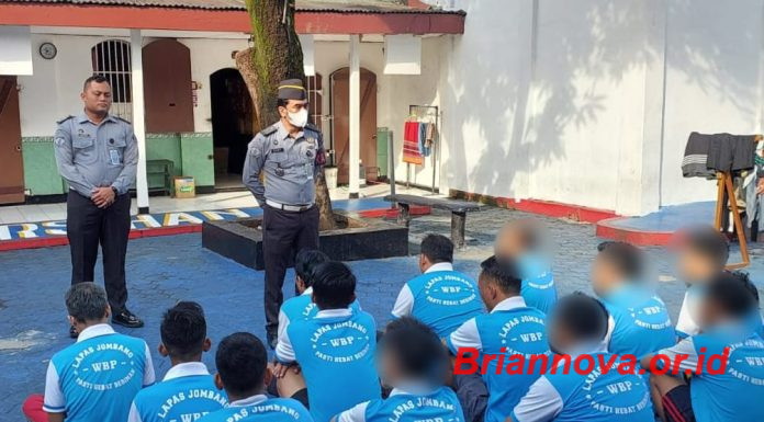 Jombang, Briannova.or.id - Kepala Kesatuan Pengamanan Lembaga Pemasyarakatan (Ka. KPLP) Lapas Kelas IIB Jombang, Dedy Pranata memberikan pengarahan kepada seluruh warga binaan pemasyarakatan (WBP) terkait pentingnya menjaga keamanan dan kebersihan lingkungan dalam blok hunian.