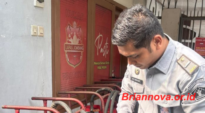Jombang, Briannova.or.id - Dalam rangka menjaga kesiapsiagaan terhadap potensi bahaya kebakaran, petugas Lembaga Pemasyarakatan Kelas IIB Jombang melaksanakan kegiatan perawatan rutin terhadap alat pemadam kebakaran, Selasa (05/06/25).