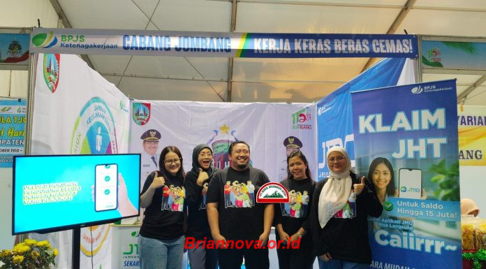 Jombang, Briannova.or.id - Dukung penyelenggaraan yang diadakan oleh Pemerintah Kabupaten Jombang, BPJS Ketenagakerjaan Kabupaten Jombang buka stand di UMKM Expo.