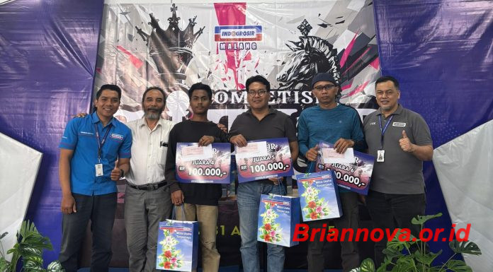 Malang, Briannova.or.id - Indogrosir Kebonsari Kota Malang menyelenggarakan turnament catur tahun 2025 yang di pimpin oleh A. Yahya, WNP. Wasit-Kepala. Harjono, WN, PNP. Wasit Pungky Wahyu Febrian, WN, PNP