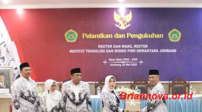 Jombang, Briannova.or.id - Institut Teknologi dan Bisnis PGRI Dewantara Jombang gelar pelantikan dan pengukuhan rektor dan wakil rektor masa jabatan 2025 - 2029, bertempat di Hall Budi Utomo ITEBIS PGRI Dewantara Jombang.