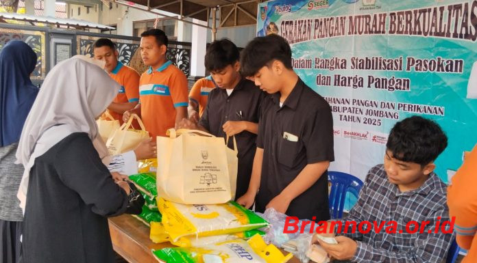 Jombang, Briannova.or.id - Menjadi salah satu program mensejahterakan masyarakat, Dinas Ketahanan Pangan dan Perikanan Kabupaten Jombang adakan Gerakan Pangan Murah Berkualitas di Desa Kalikejambon, Kecamatan Tembelang, Kabupaten Jombang. Jumat (08/08/25)